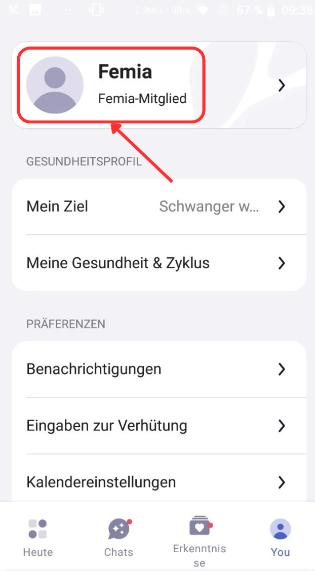 Gehen Sie zur Registerkarte 'You'.