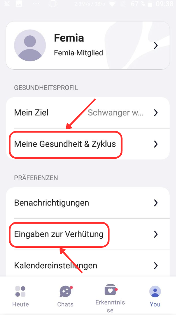 Tippen Sie auf „Meine Gesundheit und mein Zyklus“.